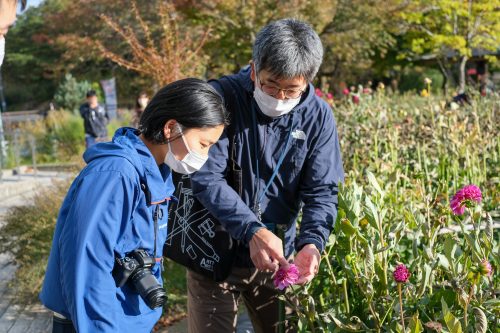 今回は南陽高校と米沢東高校のメンバーと共に、川西町の『ダリヤ園』を訪れました。650種10万本のダリアの花が咲く日本最大規模のダリア園です。