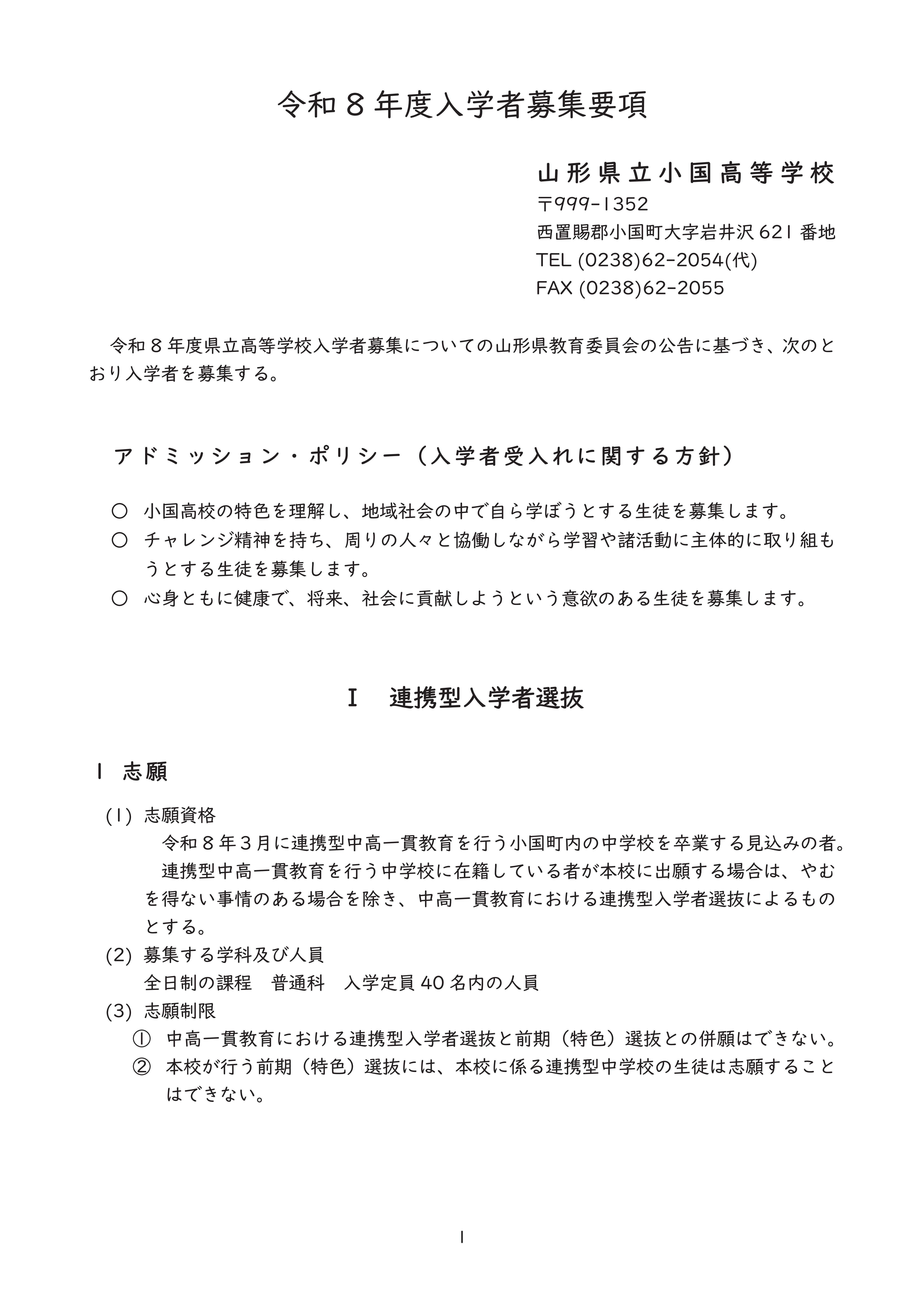 小国中学校保護者向けの学校説明会を本校1年生が行いました。